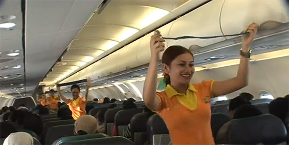Ваквиот интересен концепт во летовите, „Кебу пацифик“ го внесе уште минатата година. За да не ѕиркаат патниците од прозорецот и едвај да чекаат да помине овој досаден дел пред полетувањето, одлучиле да им приредат малку забава во авионот. Пријатно ги изненадиле, кога стјуардесите започнале да танцуваат на песните на Лејди Гага за да им покажат како треба да реагираат во итните случаи.