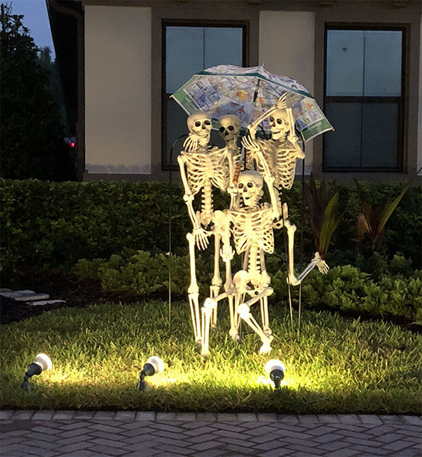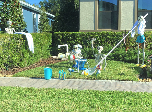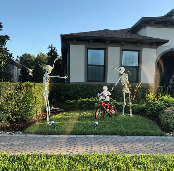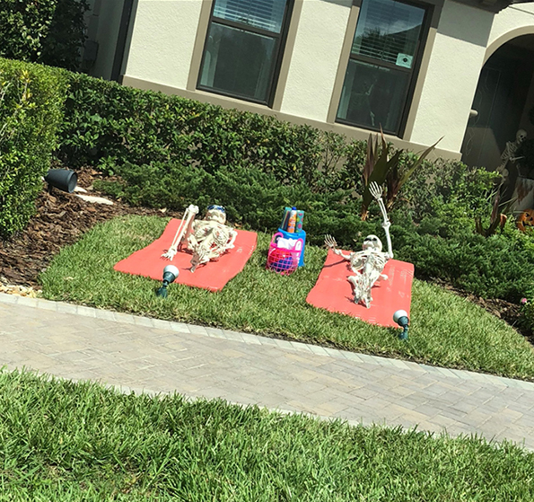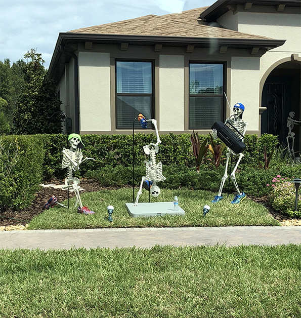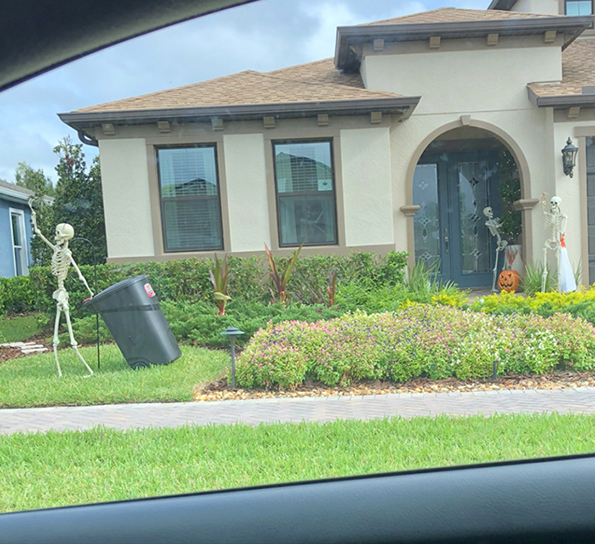 Октомври е познат по „Денот на вештерките“, и во текот на целиот месец бевме преплавени со илјадници фотографии од ширум светот (особено од Америка), на коишто очигледно може да се забележи сè поголемата креативност кога станува збор за славење. Иако се наоѓаат и мрзливци кои не вложуваат ништо за декорирање на домот и околината, оние што се инспирирани воодушевуваат и насмејуваат многу луѓе ширум светот. Едни од овие луѓе се соседите на твитерџиката позната како Семи Кампањано, којашто секој ден гледала различни сценарија од животот на 4 скелети во нивниот двор. Погледнете ги фотографиите и подгответе се да насмеете до солзи.