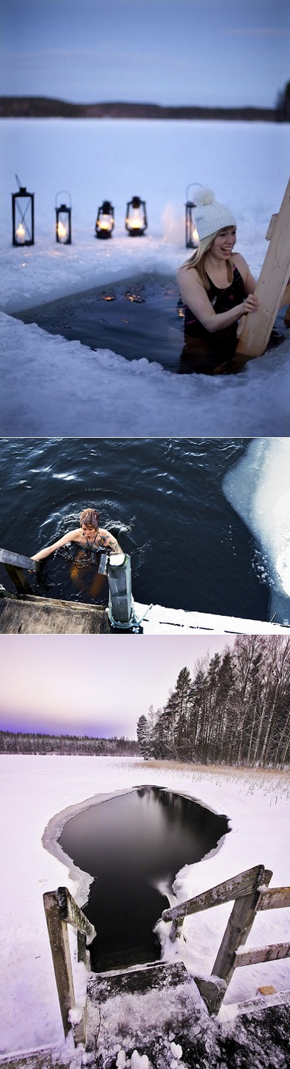Дали би се осмелиле да појдете на уникатно зимско пливање во Финска? Пливањето во ледена дупка Финците го сметаат за еден вид преродба. Се верува дека е многу здраво, а во регионот Лапланд, луѓето го започнуваат денот со кусо џбурнување во студената вода, веднаш после нивната утринска сауна.