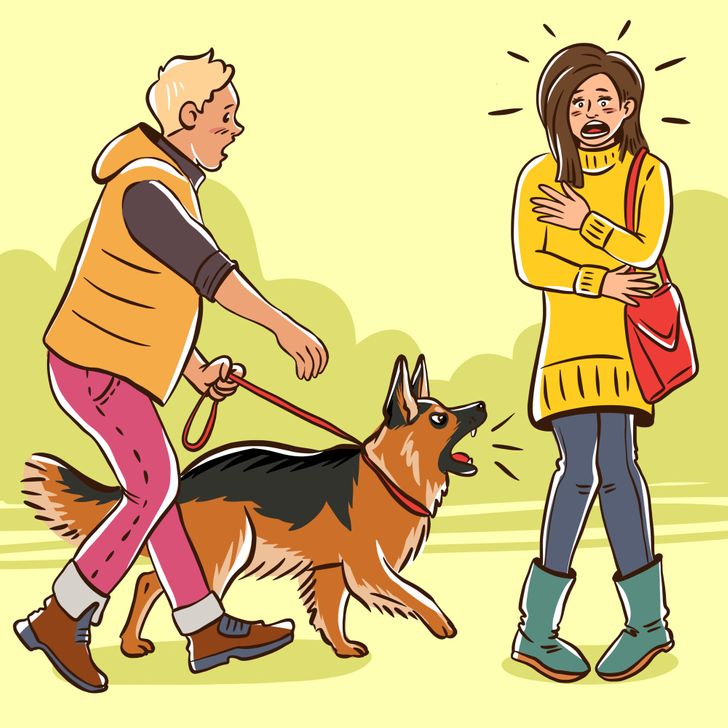 Всушност, кучињата може да ги перципираат луѓето како страшни ако направат необични движења или врева, како ставање капа или отворање чадор. Покрај тоа, кучето едноставно може да се чувствува љубоморно и да се однесува посесивно ако види пријателски интеракции помеѓу неговиот сопственик и другите луѓе.