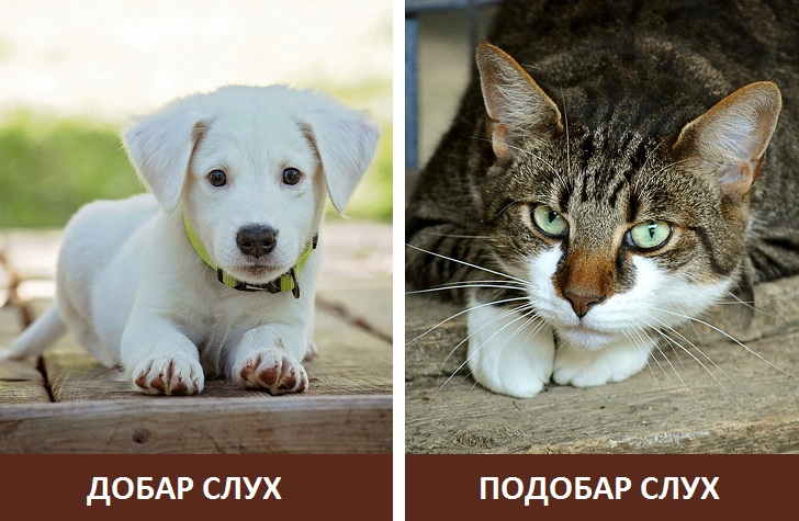 Овие мали суштества имаат многу подобар слух, не само од луѓето, туку и од другите цицачи. На пример, опсегот на слухот на кучето е од 67 херци до 45 килохерци, а кај мачката е од 48 херци до 85 килохерци. Ова им помага на мачките да ги откријат дури и најтивките звуци, како движење по тревата или течење на водата. Значи, ако тие гледаат во ѕидот, можеби постои некој проблем со цевките или некои инсекти се населиле таму.