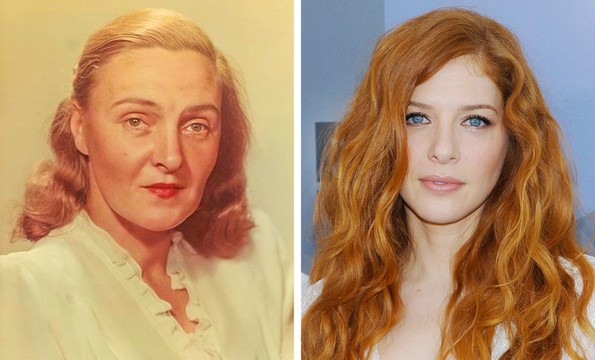 На левата фотографија е Елена Кузмина, актерка од Советскиот сојуз, фотографирана на 40 години. Десно е Рашел Лефевр, модерна актерка од Канада на истата возраст.