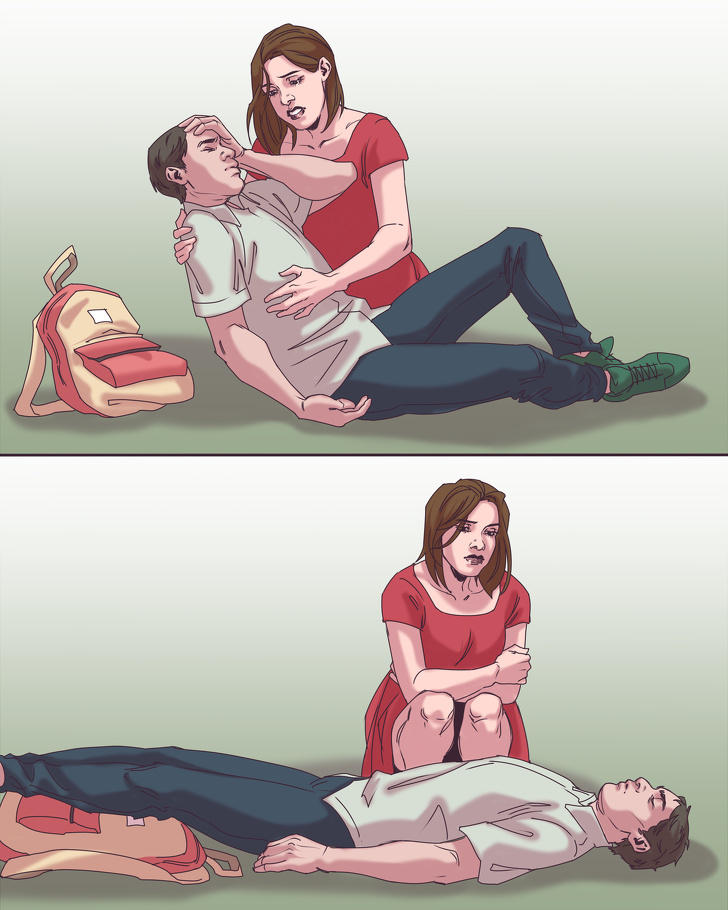 Како да се постапи? Доколку се случи човек да се онесвести, важно е неговата глава да биде поставена пониско од неговиот градниот кош. Лицето нека седне и се исправи напред или, уште подобро, нека лежи, а главата нека му е поставена малку пониско. Лицето треба да остане во оваа положба неколку минути пред да се обиде повторно да се исправи.