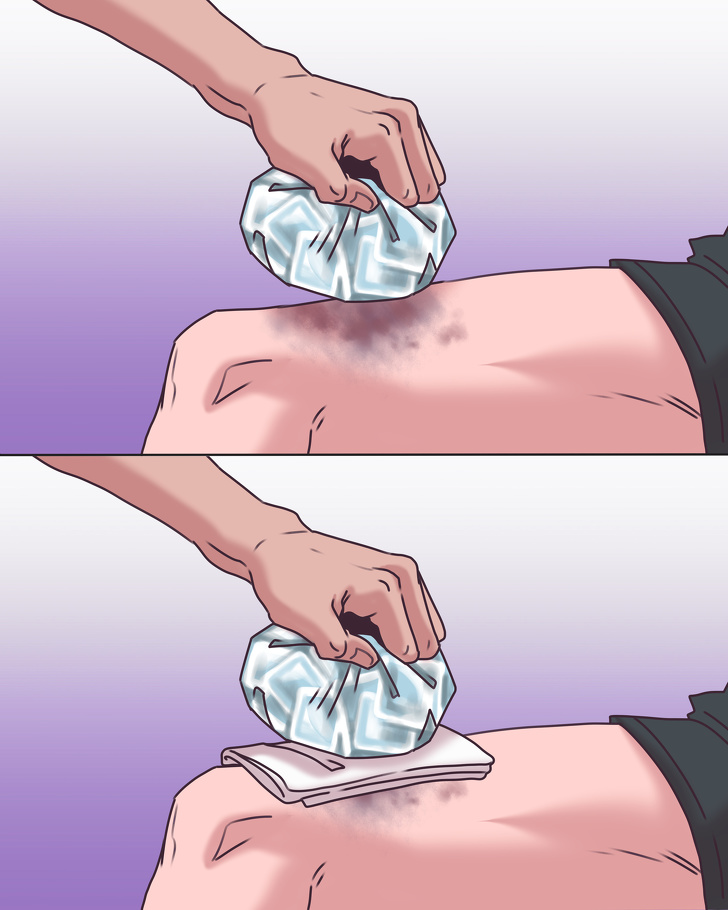 Како да се постапи? Завиткајте го мразот во крпа или друга ткаенина. Ставете ја ладната облога на модринката веднаш по ударот, но не држете ја повеќе од 10 минути на едно место.