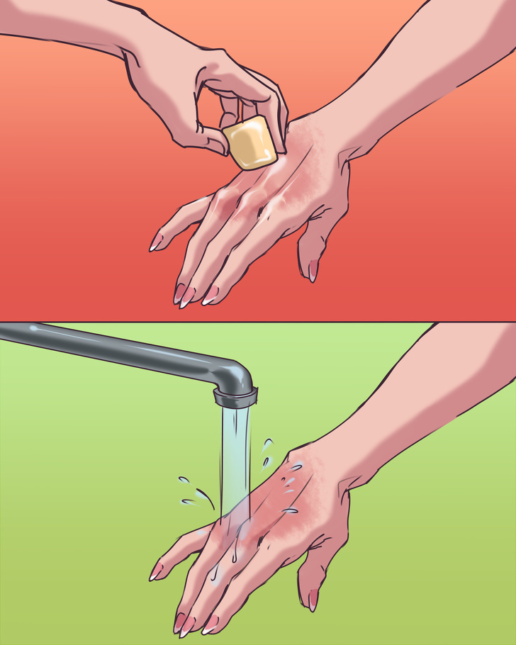Зошто е ова погрешно? Ова е типична „бабина деветина“ која нема да ви помогне. Изгореницата навлегува длабоко во кожата и морате да го изладите изгореното место за да спречите понатамошно оштетување.