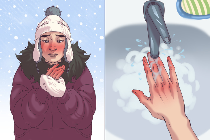 Како да се постапи? Внимателно загревајте го смрзнатиот дел од телото со потопување во млака (не топла) вода. Исто така, пиете топли пијалоци. Не дозволувајте смрзнатиот дел повторно да замрзне и добро заштитете се ако повторно излезете на ладно. Ако раните од смрзнување не изгледаат добро, побарајте лекарска помош.