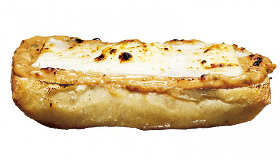 Во блендер направете пире од бадеми, сок од лимон, малку кора од лимон, маслиново масло и жалфија. Намачкајте ја смесата на парче леб, а врз неа ставете парче сирење. Потоа сето тоа ставете го на скара за да се растопи сирењето.