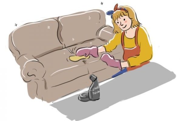 Ако имате кожна гарнитура со неколку дамки, можете многу лесно да ја исчистите со политура за чевли.