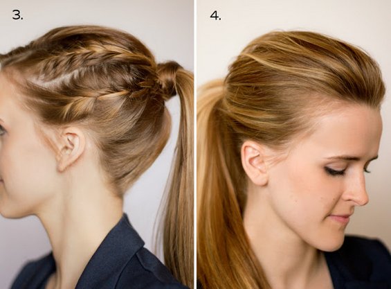 - Потоа соберете ја косата во коњско опавче, но притоа пазете да не го растурите горниот дел.