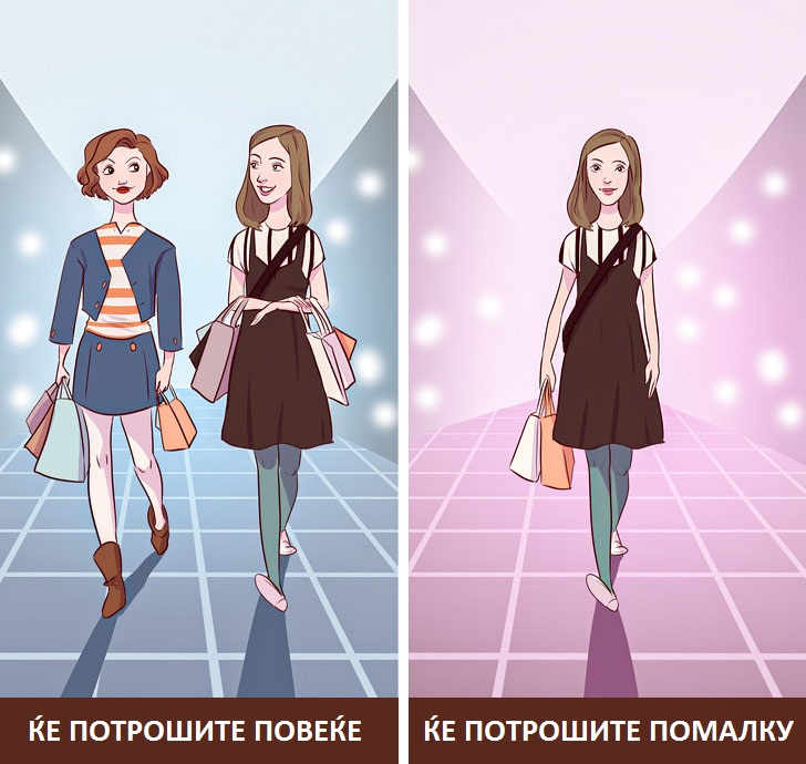 Кога сакате да се видите со пријателите, одете на прошетка во паркот. Шопингот никогаш не треба да ви служи како забава, туку како сериозна задача.