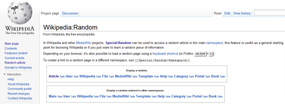 Wikipedia:Random е едноставен начин на случајно наидување на некоја статија од Википедија. Можете да ја користите оваа алатка за да научите по нешто ново секој ден. Со помош на Qwiki, кој претставува мини-Википедија која чита е уште една добра стартна точка. Учењето по нешто ново секој ден може да го одржи вашиот мозок во добра здравствена состојба. Затоа, воведете нова навика за почнување на вашите утра – додека го пиете првото кафе, читајте случајни статии, збогатете го вашето знаење и подобрете ја состојбата на вашиот ум..
