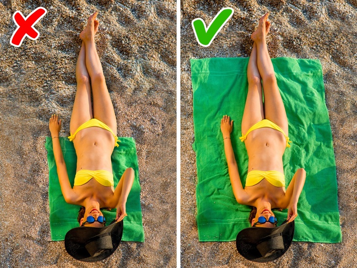 Пешкирот на кој ќе лежите на плажа исто така може да ви помогне во визуелните ефекти. Ако сакате да изгледате послаби, понесете голем, широк и долг пешкир.