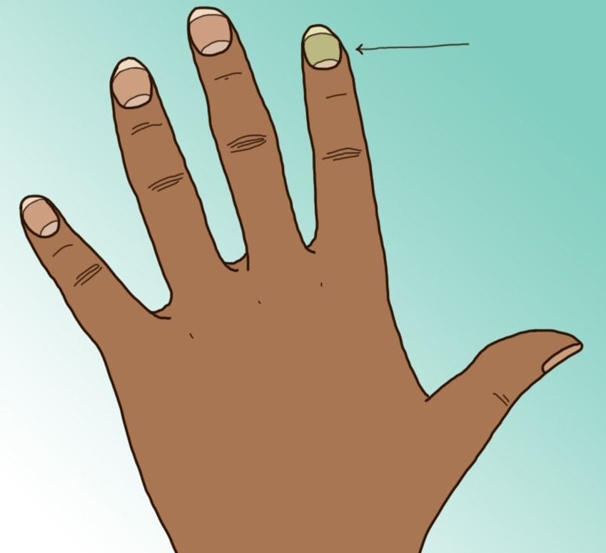 Кафеавите нокти може да укажуваат на бременост, проблеми со тироидната жлезда или неухранетост. Жолтите нокти може да се симптом на лимфедема, бронхиектазии, жолтица, туберкулоза, воспаление на тироидната жлезда, синуситис и други нарушувања. Сивите нокти најчесто се последица од одредени лекарства. Зелено-црните нокти може да се знак на зголемен број бактерии.