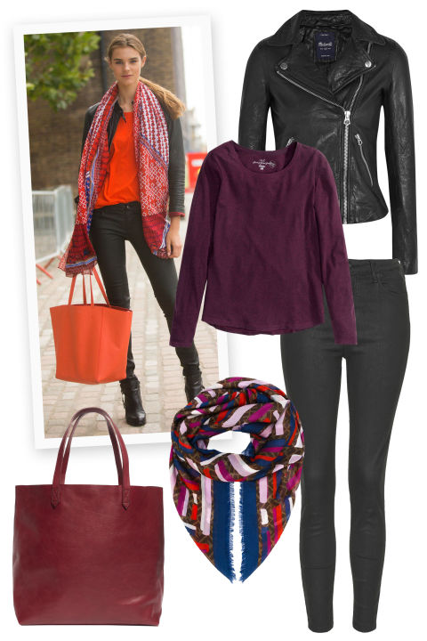 Еве начин да изгледате одлично – започнете со омилените тесни фармерки и јакна и потоа додадете блуза, марама и чанта во силни бои. Не се плашете да ризикувате – ризикот во овој случај целосно вреди.