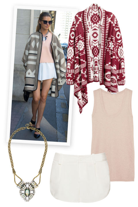 Овие три волуменозни парчиња се многу лесни за носење, полесни и отколку што си замислувате. Трикот се состои во комбинирање на широки мини шорцеви со широка блуза под пончо. За да го избалансирате овој ризичен изглед, истакнете ги нозете.