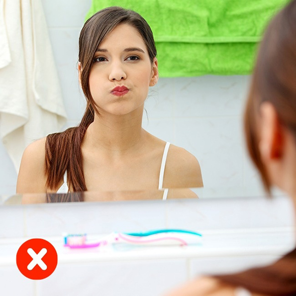 Оваа навика можеби ви делува природно, но многу заболекари ја критикуваат. Додека ги четкате забите, тие се прекриваат со заштитен слој на флуорин што водата може да го измие. За да го зачувате позитивниот ефект од четкањето на забите, плакнете ја устата со посебни безалкохолни раствори.