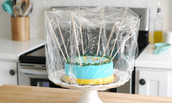 За да ја одржите формата, ставете ја на чинија, ставете дрвени стапчиња или чепкалки за заби од страните, и покријте ја со кеса. Тортата нема да се оштети или да се исуши.
