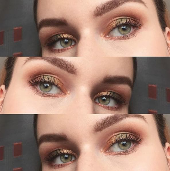 Не постои погрешна доба од денот за сенка со боја на злато. Нанесете златна сенка во неколку нијанси на очите, а на трепките ставете повеќе слоеви маскара.