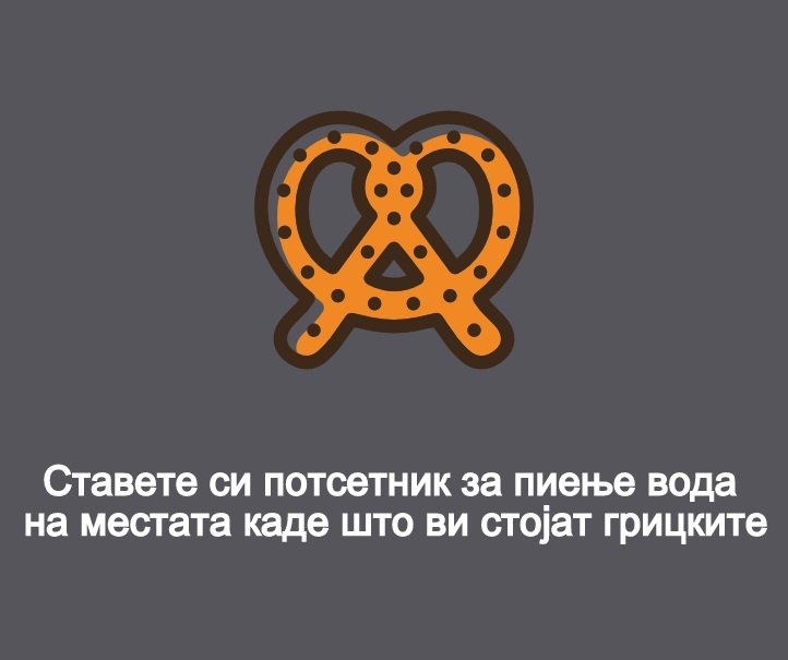 Жедните луѓе обично си каснуваат нешто пред да помислат да се напијат вода. Поставувањето потсетници на фрижидерот можеби ќе биде многу здрава навика за вас. Добар ефект од ова е што ако пиете повеќе вода, ќе немате толку голема желба за грицкање.