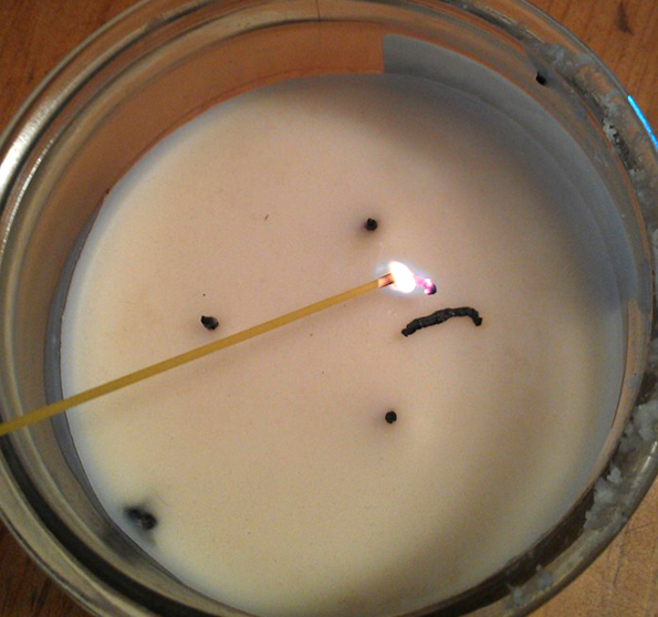 12. Запалете го малиот фитил од свеќата со помош на шпагета.