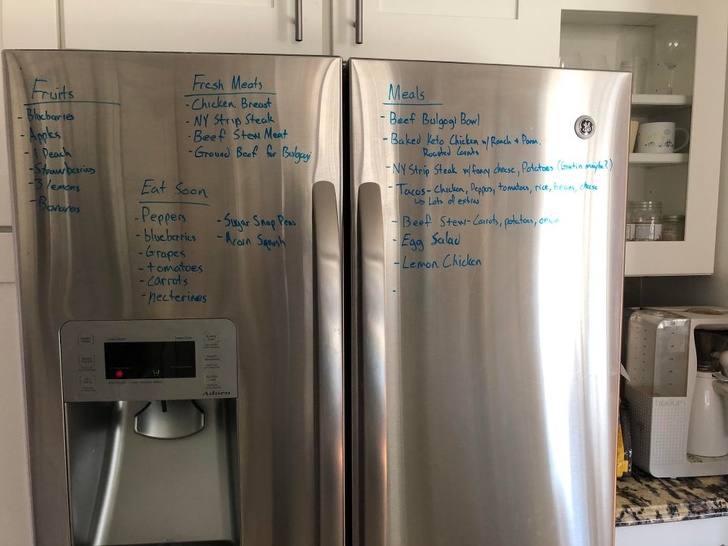15. Користете маркер што се брише и запишувајте на фрижидерот какви намирници има внатре за полесно да одберете оброци отколку да барате рецепти