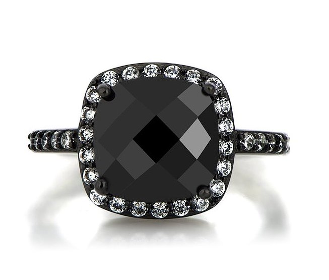 Повторно, прстен од родиум и циркони кои симулираат црн дијамант
