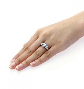 Сребрен прстен со платинеста обвивка и камен од циркон