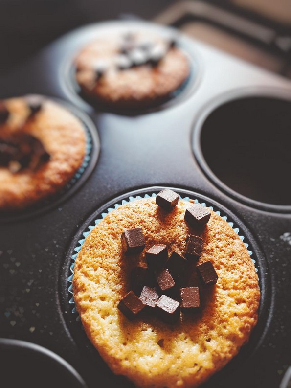 Растопете го маргаринот на тивок оган. Откако ќе се растопи, тргнете го садот од оган и додајте ги кафеавиот шеќер, екстрактот од ванила и солта. Потоа додајте ја и жолчката и добро промешајте. Кога ќе се соединат состојките, во смесата ставете и брашно. Добиената смеса ставете ја во калапи за мафини. Ставете го калапот во претходно загреана рерна на 180 степени, и печете 5 до 10 минути. На испечените мафини ставете мали парчиња чоколадо.