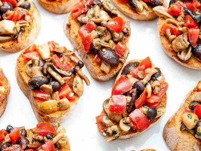 Исецкајте на ситни коцкички 6-7 свежи домати и измешајте ги со 1 чешне истолчен лук, 5 лажици маслиново масло, сол и бибер. Ако сакате можете да додадете и 250 грама моцарела.