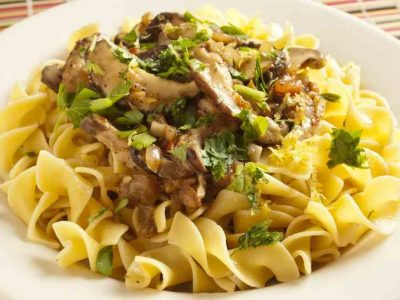 Во тава на оган ставете малку путер, 250 грама печурки, 2 мали истолчени чешниња лук и 1 лажица маслиново масло и оставете да крчка 5 минути, мешајќи постојано. Потоа додадете 60 мл бело вино и гответе додека виното не испари. Кога ќе испари, додадете уште 120 грама слатка павлака и чекајте да згусне. На крај додајте сол и бибер.