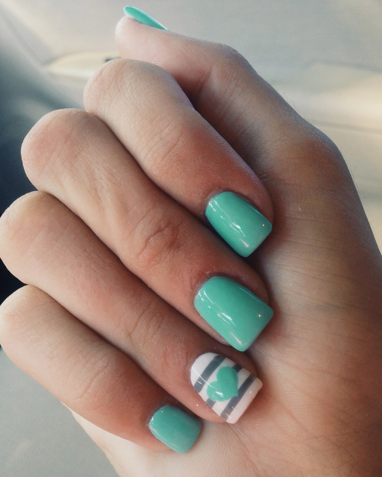 Иако сината и зелената се студени бои, тие одлично се вклопуваат со темниот тен. Тиркизната, светлосината или зелената боја се навистина популарни ова лето. Ноктите во овие бои нема да поминат незабележано.
