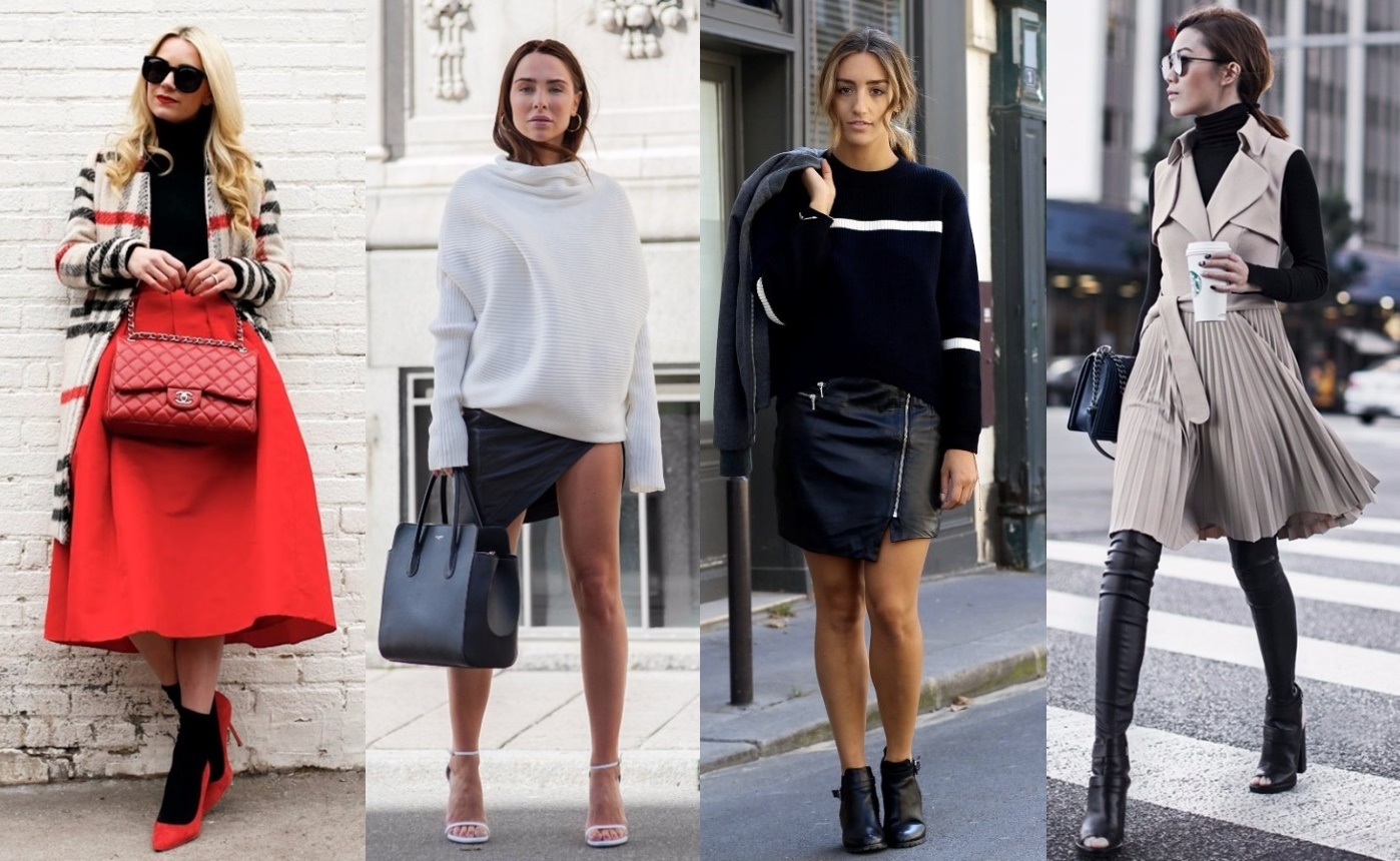 1. Првата модна комбинација се наоѓа помеѓу работниот и шик стилот, која го истакнува вашиот сексапил. Облечете џемпер преку фустанот како кошула или во комбинација со здолниште со А крој. Со високите потпетици или чизмите до глужд облечете чорапи кои ќе ги прикријат вашите колена. Ваквите комбинации ќе направат најпрво вие самите да се почувствувате посамоуверено, комплиментите сигурно ќе доаѓаат од сите страни, а атрактивниот и тренди изглед ќе направи да можете да се појавите секаде каде што ќе посакате или каде што имате обврска.
