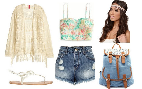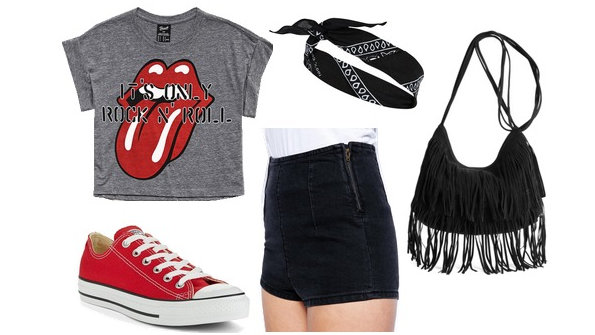 Искомбинирајте секси кратки пантолончиња, маичка со рок натпис и старки. Завршете го изгледот со чанта во индијански стил и марама за коса.