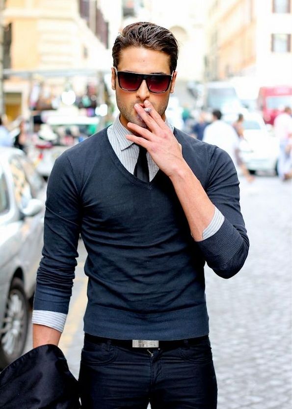 - Најгорните слоеви треба да се спуштаат најниско. Тоа значи дека јакната треба да биде подолга од џемперот, а под него не треба да се гледа кошулата;