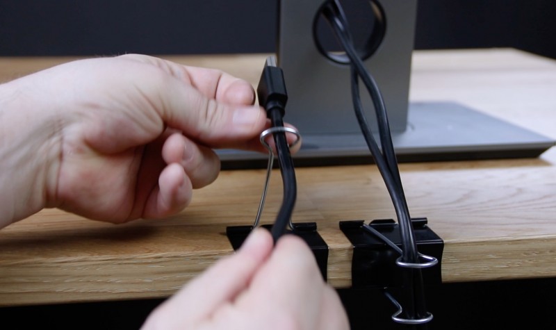 Каблите не се заплеткуваат само во кутија, туку и во просторот околу вашиот телевизор или компјутер. За да го вратите редот во овој хаос, провлечете го секој кабел низ прстен од папка за канцелариски документи и закачете ја на ќошот од столчето.