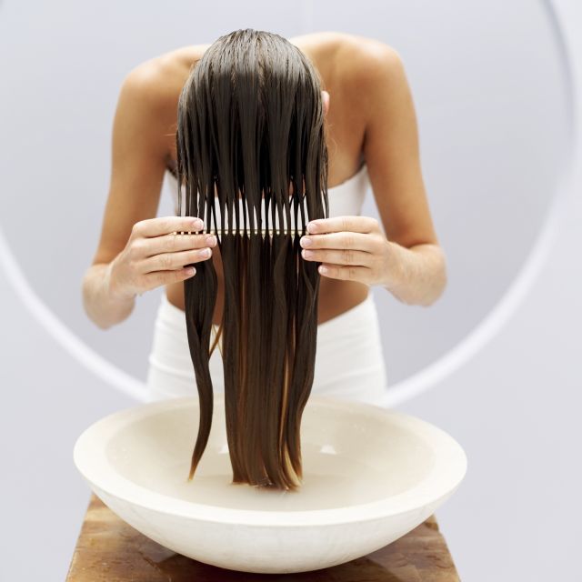 Во микробранова печка загрејте маслиново масло на неколку секунди и нанесете го на косата. Оставете го да делува 20 минути, а потоа измијте ја косата на начин на кој вообичаено го правите тоа. Маската од маслиново масло дополнително ја хидрира вашата коса и кожата на главата.