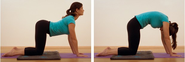 Оваа поза ви го масира ‘рбетот и ја зголемува неговата флексибилност. Застанете на сите 4 и прво извијте го грбот нагоре, а потоа спуштете го надолу.