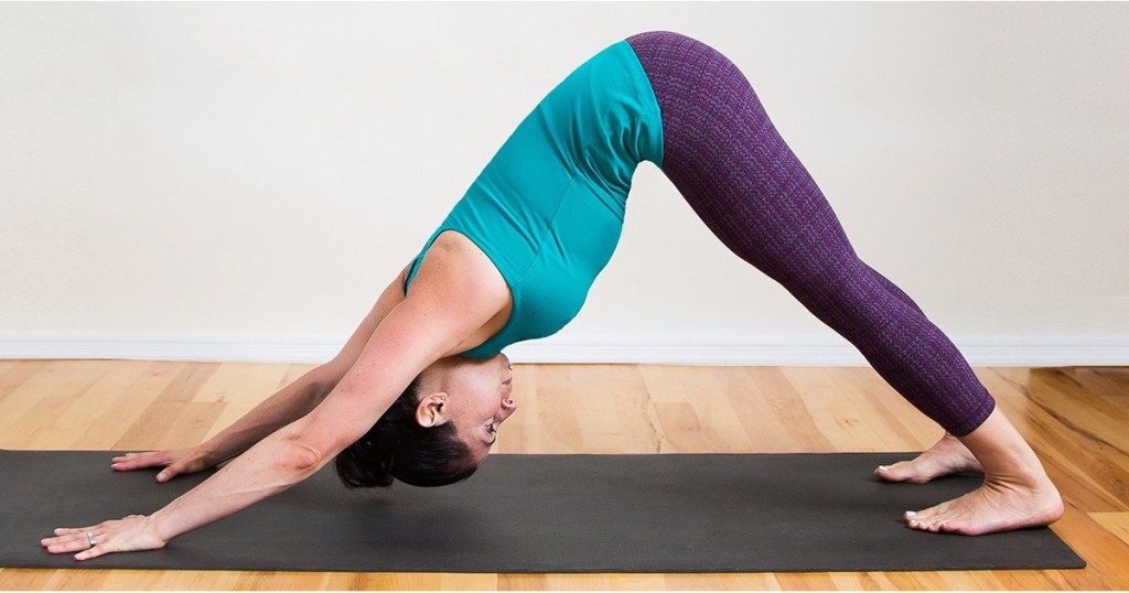 Ова е можеби најпознатата јога поза. Застанете на сите 4, раширете ги прстите на рацете, а нозете поставете ги во ширина на колковите. Издишувајќи притиснете го подот и подигнете ги колковите за да застанете на стапалата и на дланките. Обидете се да ги исправите нозете, но ако не можете во ред е и со свиткани колена.