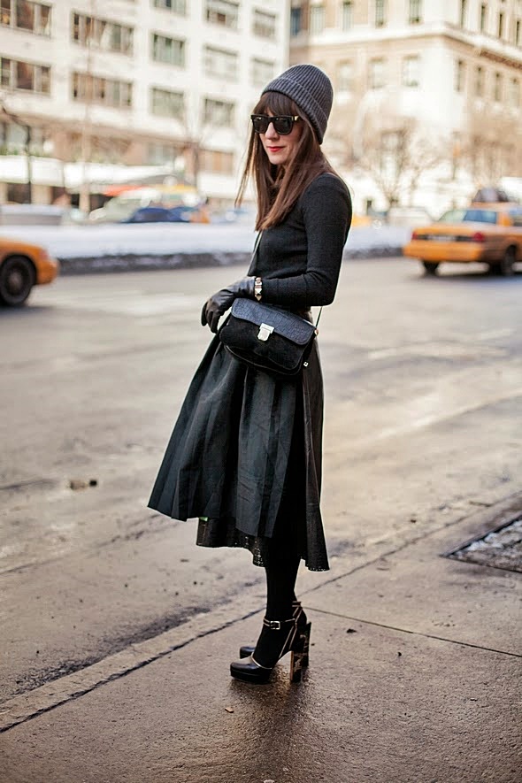 3. Здолништата со А крој совршено се комбинираат со зимските детали, како што се капите, ракавиците и големите шалови од волна, па немојте да ги разделувате во комбинациите кои ќе ги носите оваа зима. Иако можеби не изгледа така, зимските детали и здолништата прават еден навистина убав спој.