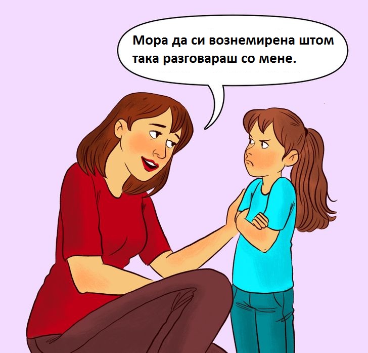 Ако децата го искажуваат своето мислење за нешто, тоа е добро. Но, тие треба да го сторат на пријателски начин, а вие не треба да ги прекинувате додека ви објаснуваат што мислат.