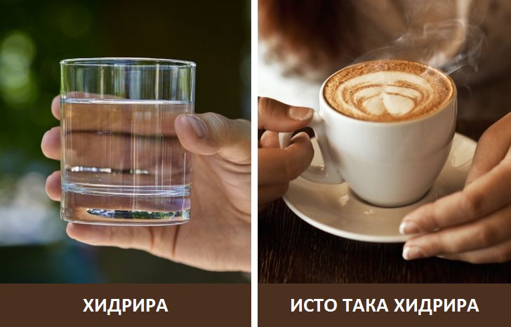 Вашата утринска шолја кафе или чај може да послужи како хидратантен пијалак. Иако овие пијалаци претежно содржат кофеин, тие сепак ја дополнуваат количината течности што ја внесувате секој ден. Според едно истражување, пиењето околу 3,5 шолји кафе дневно ќе ве хидрира исто како да пиете само вода.