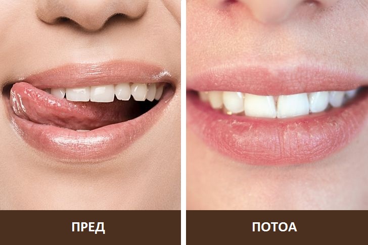Ниските температури ги сушат усните, а вие сте во искушение да ги лижете за да ги навлажните. Иако тоа може да ви помогне привремено, оваа навика всушност може да доведе до испукани усни. Плунката испарува многу брзо оставајќи ги усните посуви од претходно. Исто така, содржи многу ензими што се премногу груби за вашите нежни усни.