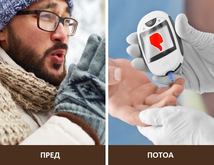 Студеното време го тера вашето тело да ослободува хормони на стрес кои го зголемуваат нивото на шеќер во крвта. Кај многумина, како што паѓа температурата, така се зголемува нивото на шеќер во крвта затоа што кога е студено, помалку сте мотивирани да одите надвор и да вежбате. Бидејќи физичката активност го намалува шеќерот во крвта, лекарите препорачуваат да вежбате дома во зима за да го држите нивото на шеќер под контрола.