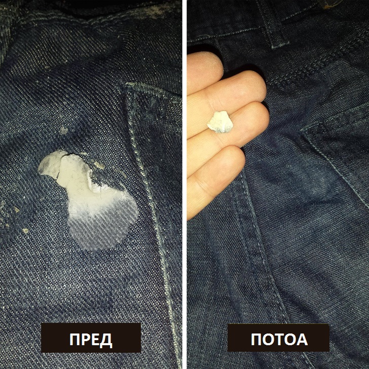 Поставете ја областа со гума за џвакање на парче дебела хартија, така што страната со гума за џвакање да допира на хартијата. Пеглајте на спротивната страна од ткаенината. Гумата за џвакање ќе омекне и ќе се залепи за хартијата, со што ќе овозможи лесно да го отстраните остатокот од вашата облека. Бидете сигурни дека температурата не е премногу висока, во спротивно гумата за џвакање ќе се растопи и ќе биде тешко да се отстрани.