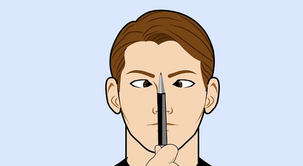 - Доближувајте го полека до вашиот нос додека ги насочувате двете очи кон пенкалото