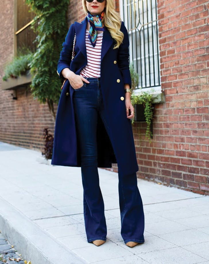 2. Долг капут + Фармерки во форма на ѕвоно + Марама