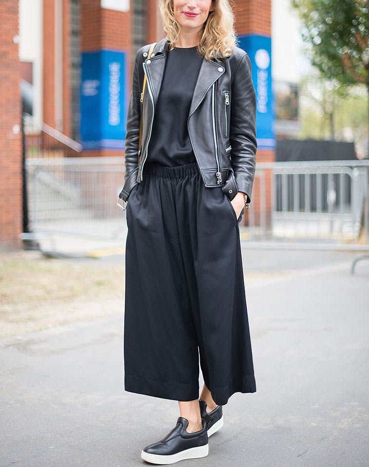 Кожната јакна и црното од глава до пети се една од оние комбинации кои се вечни и секогаш занимливи и инспиративни. Патики, рамни обувки или високи потпетици – изборот е ваш, а доколку сакате рок стил, ваквиот начин за стилизирање на кожната јакна треба да стане ваша мантра.