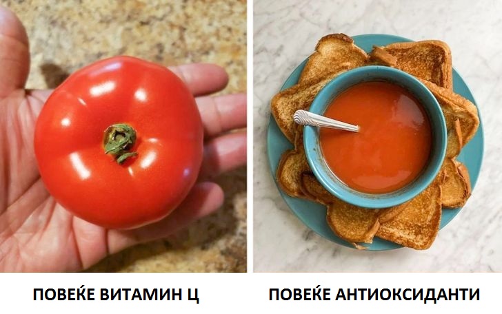 Сите сме навикнати да јадеме свежи домати. Доматите содржат витамин Ц, но експертите велат дека кога ќе се сварат, тие имаат многу поголемо ниво на ликопен и тој може да биде помоќен антиоксидант од витаминот Ц. Исто така, готвењето може да ги омекне влакната што ги содржат доматите, па тие стануваат полесни за варење во организмот.
