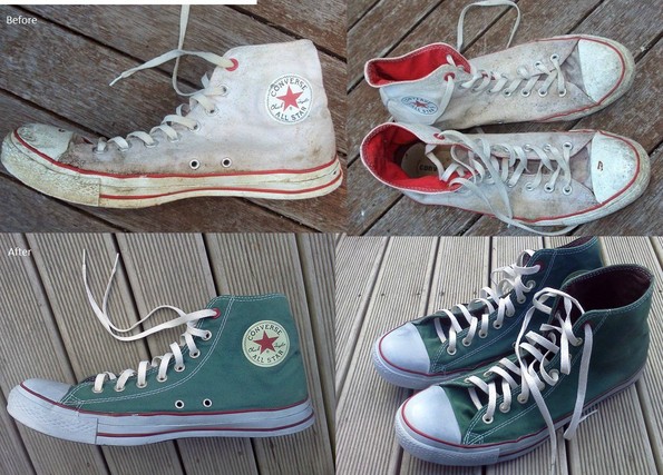 Прво поминете ги со паста за заби и сода бикарбона, па нанесете им текстилна боја. Останува само уште да ги исушите во машина за сушење алишта.