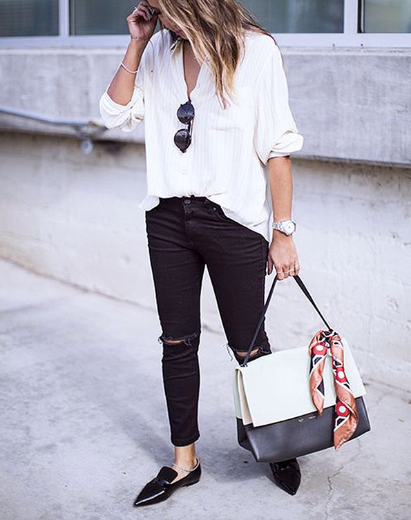 Вметнете ја вашата кошула во пантолоните од напред, но задниот дел оставете го пуштен. Ова е изглед кој делува опуштено, но истовремено и професионално. Ако се чувствувате неженствено во вашата „машка“ работна униформа, тогаш ова е одличен начин да го освежите вашиот изглед.